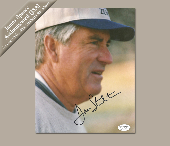 Golf Links To The Past is proud to guarantee the authenticity of every autograph we sell. In addition, we provide appropriate documentation from official licensees who have commissioned private signings or we employ the services of the two leading independent autograph authenticating companies James Spence Authentication (JSA) and/or PSA/DNA, to authenticate all other autographs.