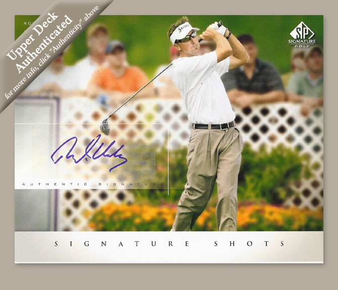 In 2004 and 2005, the Upper Deck Company produced 8 x 10 autographed images on card stock. These pictures present themselves as glossy photographs. The Upper Deck Company commissioned private signings with these stars. The backs of each card expressly warrants the authenticity of the signature of the depicted golfer.