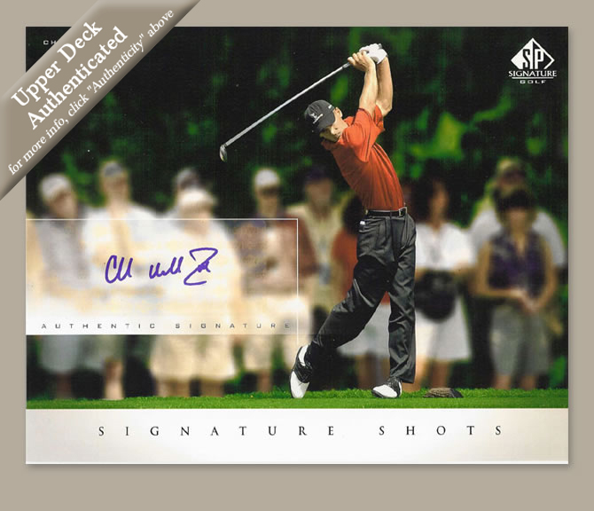 In 2004 and 2005, the Upper Deck Company produced 8 x 10 autographed images on card stock. These pictures present themselves as glossy photographs. The Upper Deck Company commissioned private signings with these stars. The backs of each card expressly warrants the authenticity of the signature of the depicted golfer.