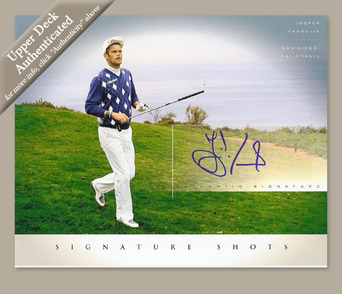 In 2004 and 2005, the Upper Deck Company produced 8 x 10 autographed images on card stock. These pictures present themselves as glossy photographs. The Upper Deck Company commissioned private signings with these stars. The backs of each card expressly warrants the authenticity of the signature of the depicted golfer.