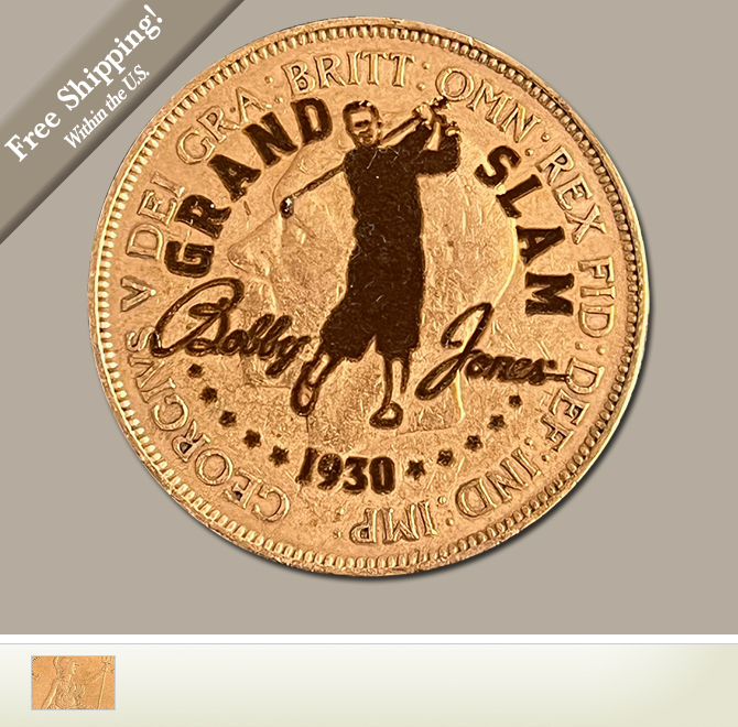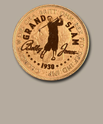 This stunning ball marker commemorates Bobby Jones' 1930 Impregnable Quadrilateral with a real 1930 British penny and has been laser engraved with the Bobby Jones Grand Slam Centennial logo.