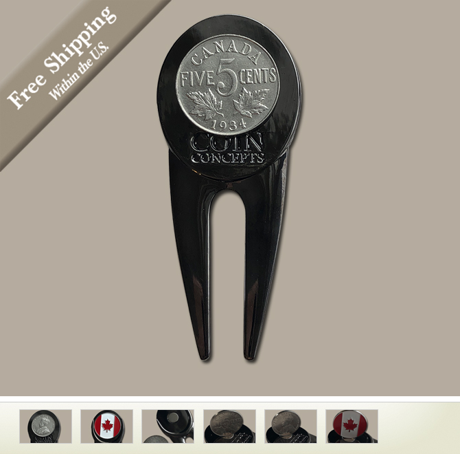 Canadian Divot Repair Tool & Ball Marker with Pre-1937 Canadian Nickel
