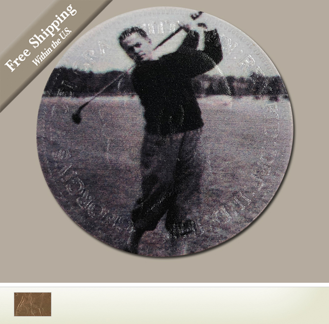 Bobby Jones accomplished The Grand Slam in 1930 so to commemorate this historic event we have created a ball marker using a 1930 British bronze penny since the first leg of The Grand Slam was the British Amateur. Using the latest printing technology we have captured this famous image in golf history on one side of the penny.