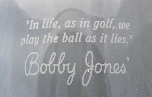 Jones was diagnosed with syringomyelia in 1944, a rare and degenerative disease of the central nervous system. Jones would battle the disease for 23 years, first using a cane, then leg braces and finally in a wheelchair. During the final years of his life Jones could not even hold a pen. When Jones was asked about his crippling disease his response spoke volumes about the kind of man he was, “In life, as in golf, we all have to play the ball as it lies."