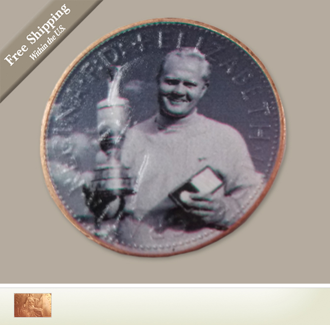 To commemorate this historic accomplishment we have created a ball marker using an original 1966 British Penny. Using the latest printing technology we have captured this famous image on one side of the farthing.