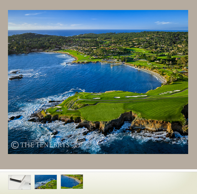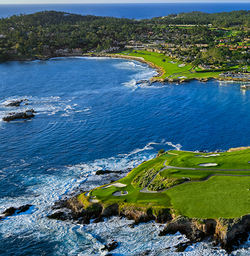This breathtaking aerial shot of Pebble Beach Golf Links shows the sixth, seventh and tee shot of the eighth holes on Arrowhead Point.