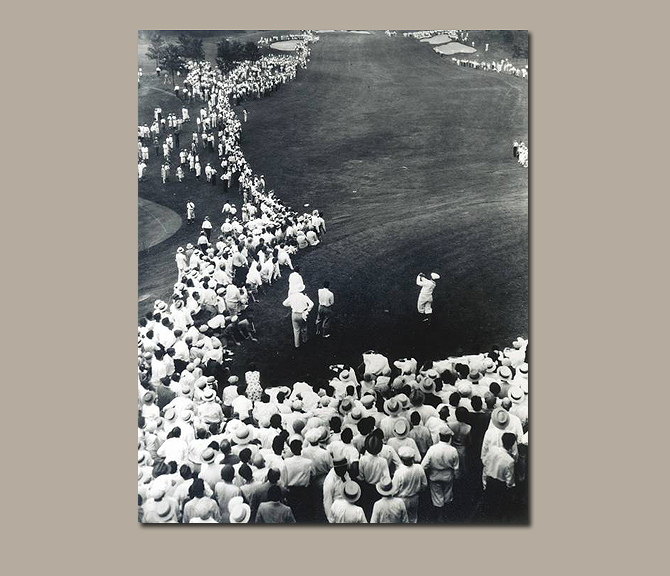 When Bobby Jones drove from the tenth tee in his final round of the 1930 U.S. Open at Interlachen the gallery lined both sides of the fairway from the tee to the green, 345 yards away. It is estimated that nine to ten thousand fans followed him that day.