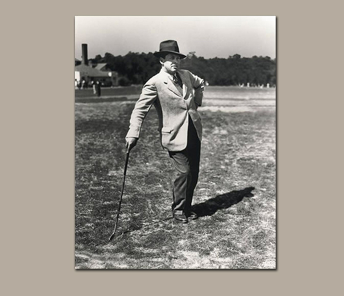 Bobby Jones leans on his famous putter Calamity Jane during a visit to the North and South Open at Pinehurst CC.