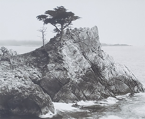 Standing on a granite hillside off California's scenic 17-mile drive in Pebble Beach, the Lone Cypress is a western icon, and has been called one of the most photographed trees in North America. The Lone Cypress is the official symbol of the Pebble Beach Company. The tree is located between Cypress Point Golf Course and the Pebble Beach Golf Links, two of world's most well known golf courses. Possibly as old as 250 years, the cypress has been scarred by fire and held in place with cables for 65 years. The Monterey Cypress grows naturally only in Pebble Beach and Point Lobos.