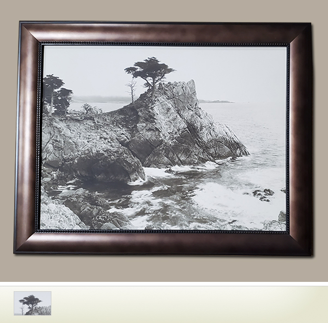 This handsomely framed canvas print measures 23.25" x 18.5"