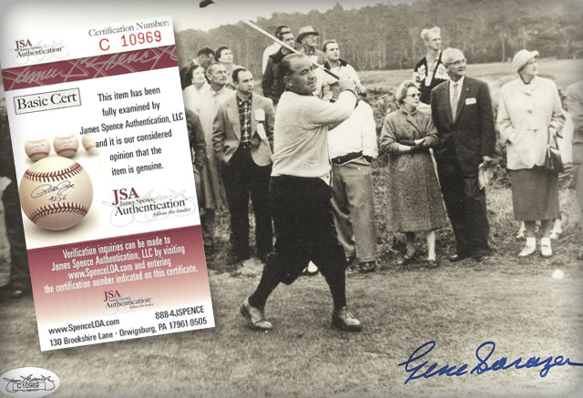 Golf Links to the Past is proud to guarantee the authenticity of every autograph we sell. We provide appropriate documentation from official licensees who have commissioned private signings, and we employ the services of leading independent autograph authenticating companies, James Spence Authentication (JSA), PSA/DNA, Beckett, NGC, CAS (Certified Authentication Service), to authenticate all other autographs.