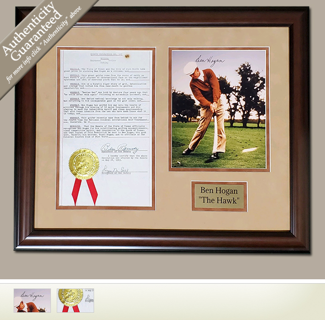 In addition to the Texas State Senate resolution this historic piece also contains a beautifully autographed photo of Ben Hogan.