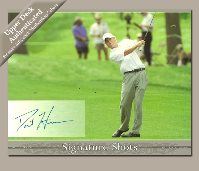 In 2004 and 2005, the Upper Deck Company produced 8 x 10 autographed images on card stock. These pictures present themselves as glossy photographs. The Upper Deck Company commissioned private signings with these stars. The backs of each card expressly warrants the authenticity of the signature of the depicted golfer.