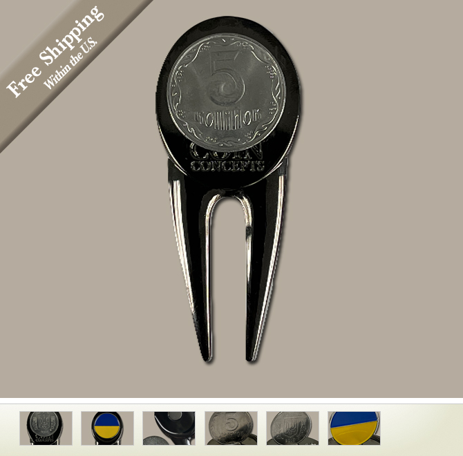 Ukrainian Divot Repair Tool & Ball Marker with Ukrainian Kopiyka