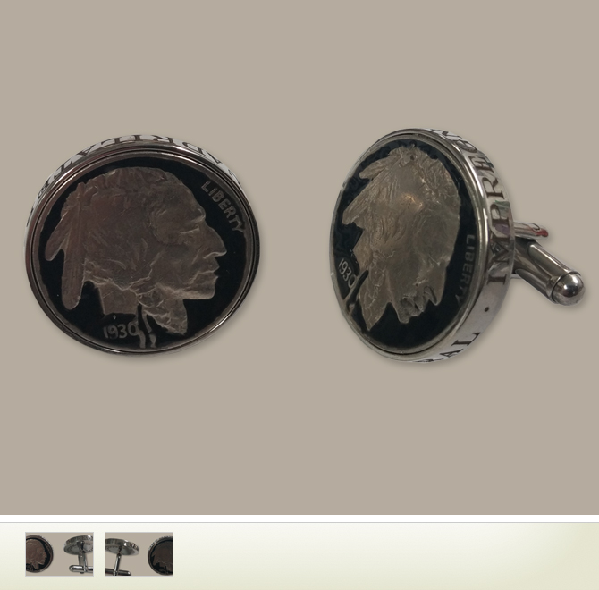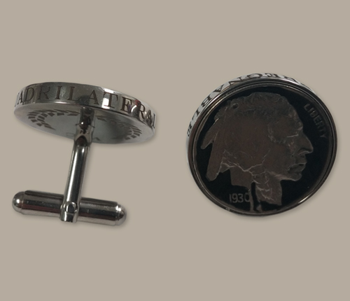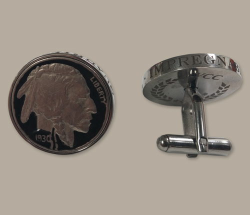 These stainless steel cufflinks feature a genuine, hand enameled 1930 buffalo nickel to commemorate Jones' 1930 Grand Slam. Around the perimeter of each cufflink is engraved "Impregnable Quadrilateral".
