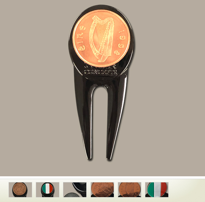 Irish Divot Repair Tool & Ball Marker with Irish Pence Coin