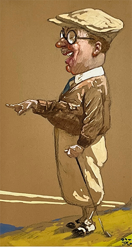 Harry Rountree (1878-1950) was a prolific illustrator working in England around the turn of the 19/20th centuries. He came from New Zealand in 1901 to London, when he was 23 years old. After struggling for 2 years, by 1903 Rountree was illustrating books for the editor of Little Folks, writing and illustrating his own books, and in demand by nearly every publisher in London. In 1910 Rountree prvoided the 64 color illustrations for Bernard Darwin's famous book The Golf Courses of the British Isles.