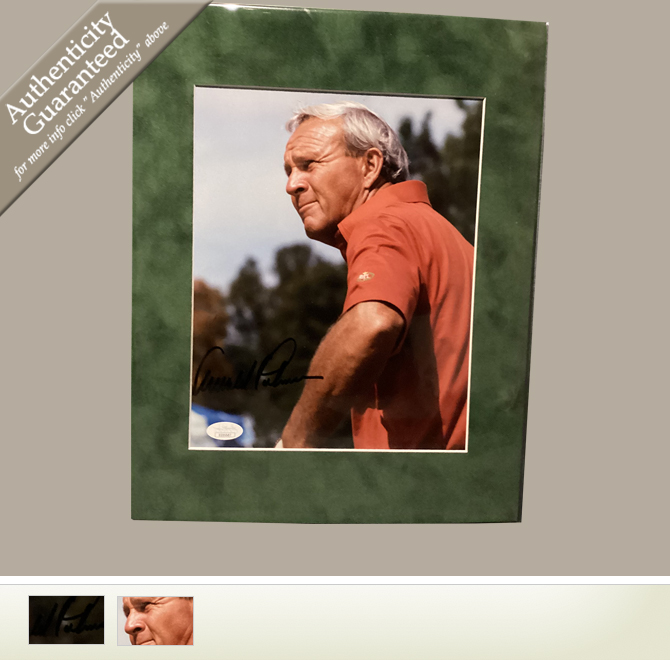 This beautifully autographed 8"x10" photo by Palmer is matted and ready to frame!