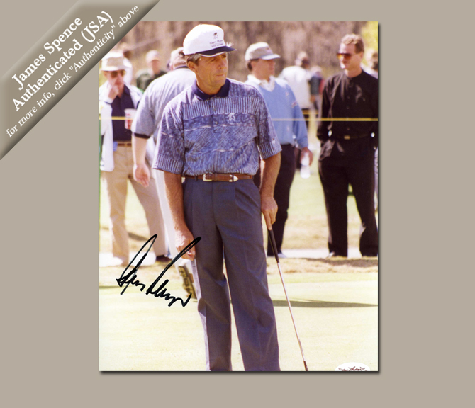 Golf Links To The Past is proud to guarantee the authenticity of every autograph we sell. In addition, we provide appropriate documentation from official licensees who have commissioned private signings or we employ the services of the two leading independent autograph authenticating companies James Spence Authentication (JSA) and/or PSA/DNA, to authenticate all other autographs.