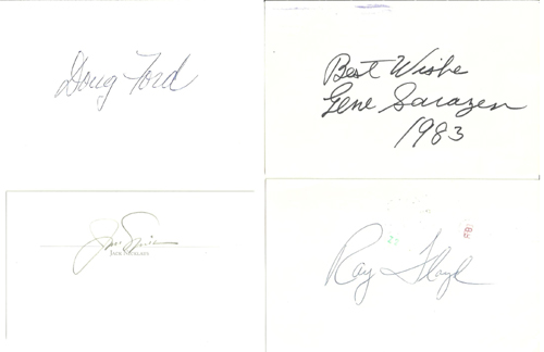 Golf Links to the Past is proud to guarantee the authenticity of every autograph we sell. We provide appropriate documentation from official licensees who have commissioned private signings, and we employ the services of the two leading independent autograph authenticating companies, James Spence Authentication (JSA) and/or PSA/DNA, to authenticate all other autographs.