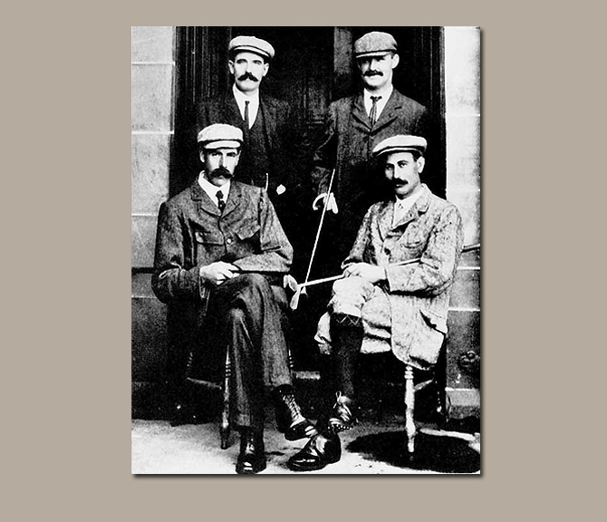 Sandy Herd, J.H. Taylor, James Braid and Harry Vardon are shown prior to their International Challenge Match in 1905 at St Andrews, Scotland.