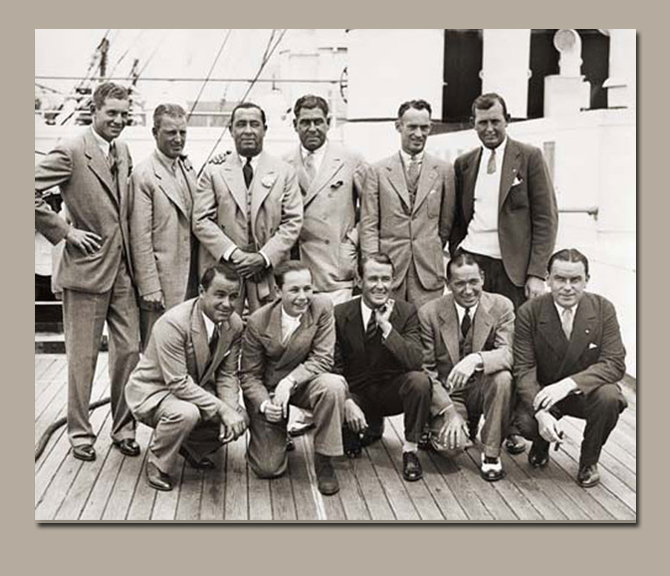 1933 US Ryder Cup Team. Team Captain, Walter Hagen is standing third from the left.